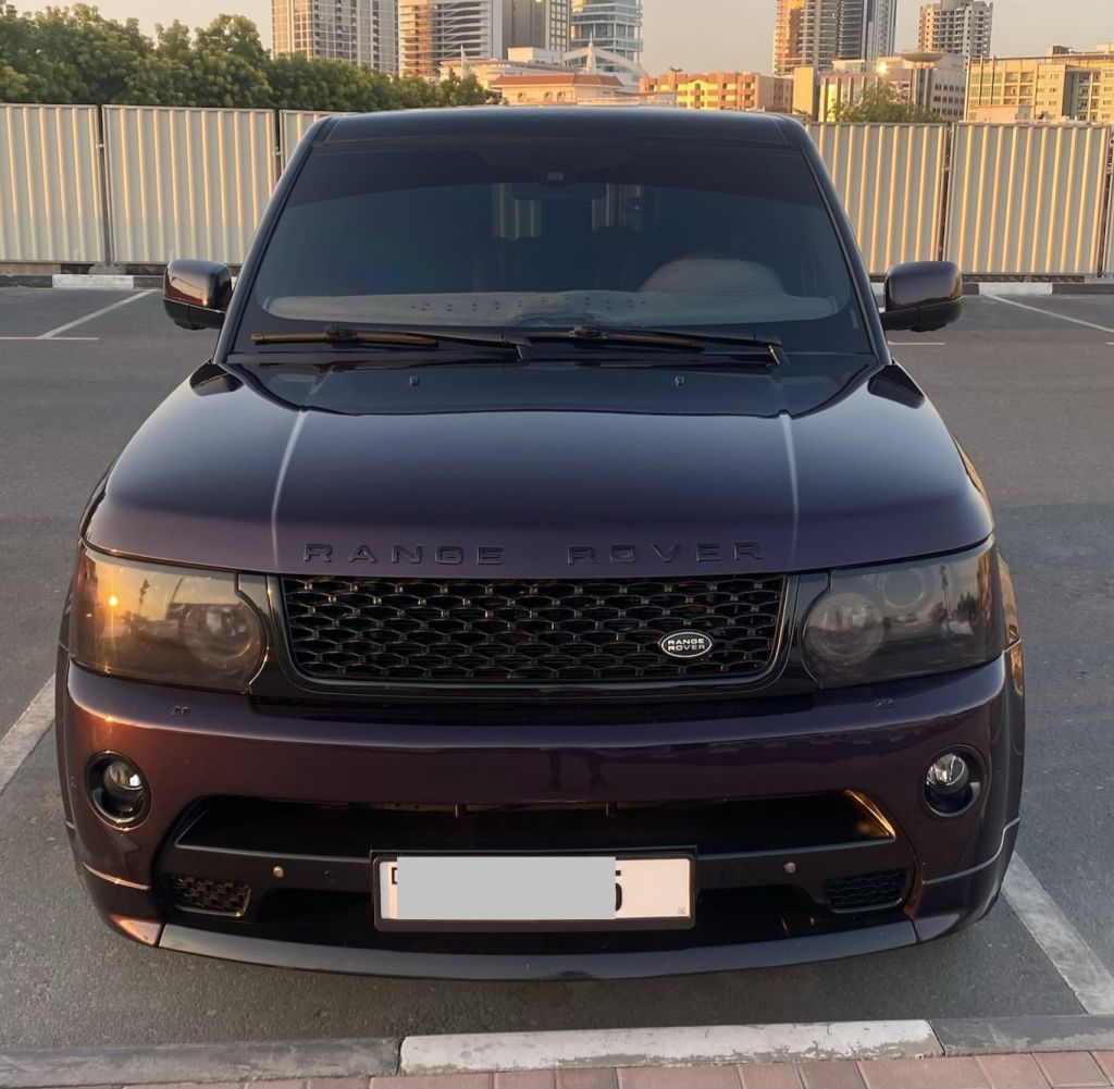 Land Rover Range Rover Sport Supercharged Year 2013 GCC. Mileage: 166,000 km. Engine: 5.0L V8. Color: Custom Violet. New tires 2025. Fully customized luxury & performance SUV with unique styling. Premium leather with custom violet ambient interior lighting. Premium leather seats. Touchscreen infotainment system. Amazing sound system. Cruise control. Parking camera. Parking sensors. Push-start ignition. Price: AED 38,000.