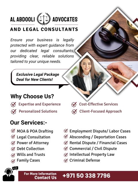 Advocate Office Faisal Al Zaabi Law Firm and Legal Consultancy Ajman deals with all legal cases and litigation in all cases (personal status, Sharia, labor, civil, commercial, real estate, criminal, opening check execution, substantive disputes, compensation cases, inheritances, rental disputes, clearing transactions and cases for the Ajman Free Zone, registering all appeals, challenges and problems