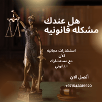 مستشار قانوني - قاضي سابق بخبرة طويلة هل تواجه مشكلة قانونية هل تحتاج استشارة قانونية موثوقة وسريعة معك مستشار قانوني وقاضي سابق بخبرة سنوات طويلة في جميع مجالات القانون، جاهز لتقديم استشارات قانونية مجانية مبدئية حلول قانونية احترافية لمختلف القضايا توجيه قانوني صحيح قبل اتخاذ أي إجراء سرية تامة في التعامل مع جميع الحالات خبرة في مختلف أنواع القضايا