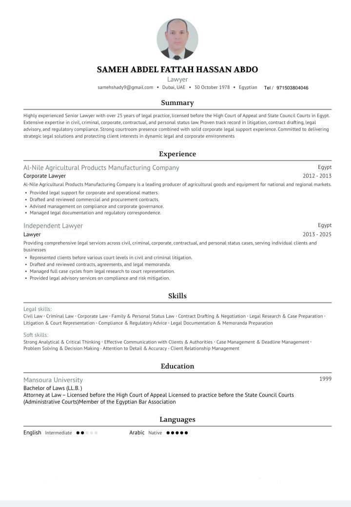 طلب تعيين مستشار قانوني في مكتب محاماة أو في مجال الشؤون القانونية في شركة أو جهة حكومية تتناسب مع المؤهل الدراسي والخبرة القانونية بالمحاماة لأكثر من خمسة وعشرون عاما