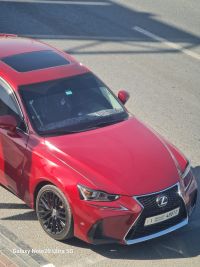 Lexus F Sport, red with black wheels, 152,000 km. V6 engine with Eco/Normal/Sport modes. Leather seats with cooling and heating, sunroof, premium sound system, dual-zone climate control, smart key, and blind spot monitoring. Major maintenance completed and new brakes. Minor bumper repair in country of origin (repaired), only light warning. Sharjah plates. Price is negotiable. Reason for sale: travel.