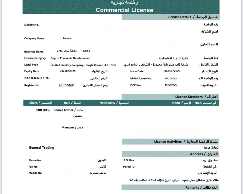 Active General trading license with active bank accountUSDandAED issue 2020 price 55000
