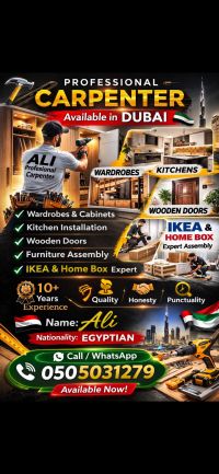 نجار محترف متوفر للعمل في دبي الخدمات تفصيل وتركيب الخزائن وغرف الملابس تركيب المطابخ الحديثة تركيب الأبواب الخشبية فك وتركيب الأثاث تركيب أثاث ايكيا وهوم بوكس فني صيانة جميع الخزائن والمطابخ اصلاح وصيانة جميع الأعمال الخشبية جودة عالية في التنفيذ سرعة ودقة في العمل أسعار مناسبة متوفر للعمل في جميع مناطق دبي