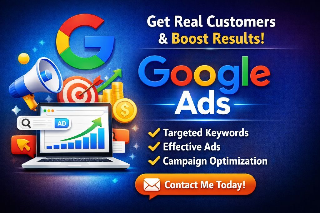 I provide Google Ads campaign setup and management Target real customers, choose the right keywords, write effective ads, and optimize campaigns to reduce cost and increase results. Contact me to start your ad campaign today