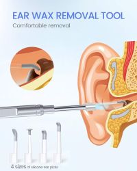 أطلب جهاز تنظيف الاذن بكاميرا اليوم واستمتع بتجربة تنظيف آمنة وسهلة متى ما احتجت طريقه الربط WiFi - بتردد 2.4 جيجا - محتويات العلبة جهاز تنظيف الاذن، 3 رؤوس تنظيف، عبوة تخزين، كابل شحن USB، دليل المستخدم