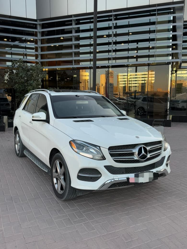 Mercedes GLE 350 4MATIC, American import, model 2017, mileage 192,000 km, pearl white exterior, dark brown leather interior, excellent condition, first owner in the country. Very minor accident on left side, chassis warranty, gearbox, engine, all agency parts. Inspection condition. Full option specifications number 1/1, sunroof, sensors, screen, rear camera, steering control, electric seats, etc. Chassis number: 4JGDA5HB5HA975290. Price: 49,000 AED, negotiable. Location: Ajman.