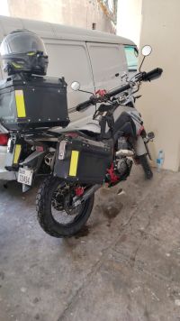 New motorcycle for sale, fully licensed with complete accessories. Sharmax 400 GL with oil cooling, mileage 3950 km. Includes fog lights, clock, cup holder, phone holder, fast USB - C phone charger, spare rear tire tube, oil filter, 1 spark plug, 3 original large - sized boxes, certified fuel tank that can be filled at gas stations. The motorcycle is under warranty 2 - year engine warranty and 3