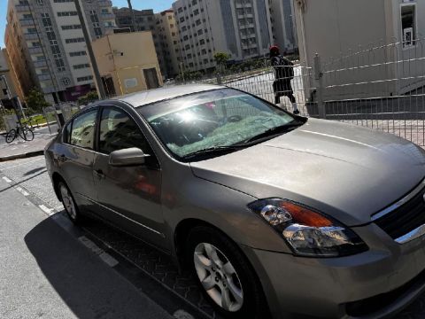 For sale: Nissan Altima SL 2021 with customs papers, not used in the country. Mileage is only 27,000 miles. Exterior modified to 2025 style. Clean engine with no issues. Warranty on gearbox, chassis, and engine. New tires. The car is located in Sharjah. Features include large screen, camera, 17-inch rims, radar, cruise control, blind spot monitoring, sensors, USB charger, sunroof, fingerprint key. Color: Royal black exterior, black interior.