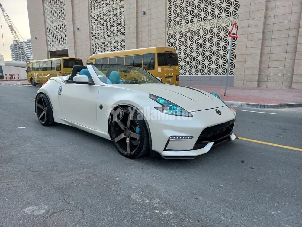 Nissan 370Z. 5 modifications (popcorn, flames, high rotation speed, etc.) Custom titanium exhaust (start-stop). Cold air intake from Takeda. Remote start. New battery only one month old. New satin pearl white exterior paint. New rims. New 2024 tires. Front Nismo v2. Rear Amuse bumpers (original also available). Internal RGB angel eyes. Light blue Alcantara leather.