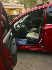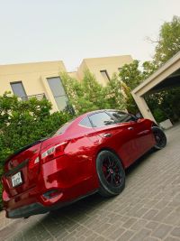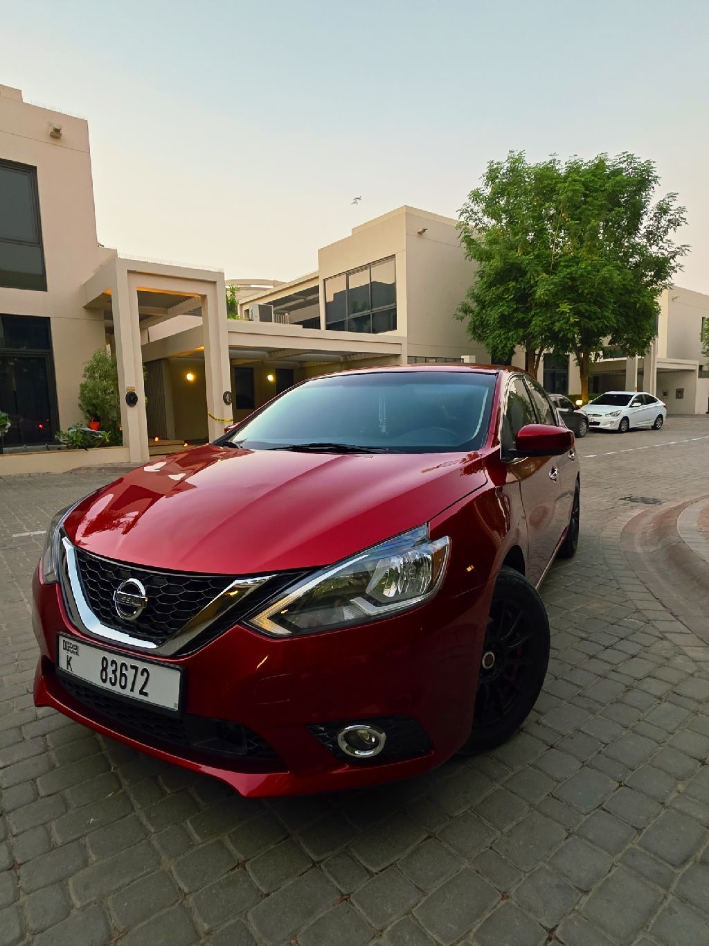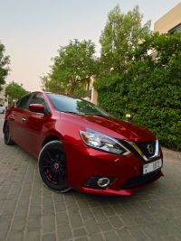 Nissan Sentra SR model 2019, American import, red color, mileage 113,500 miles, automatic transmission, sport package, fingerprint system, cruise control, steering wheel controls, number 2, complete equipment, sunroof, in agency condition, excellent cleanliness, economical, 4-cylinder 1800cc, successfully inspected, full transfer required, for serious buyers only, 19,000 AED.