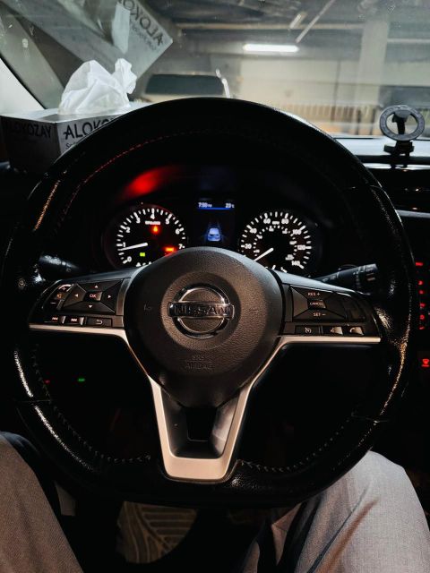 Nissan Rogue SV 2023 model, four-wheel drive, airbags, agency, 18,000 miles, in agency condition, fingerprint, large screen, panoramic sunroof, seats equipped with cooling and heating, seats and steering wheel, remote start, alloy wheels, cruise control, rear air conditioning, lane departure warning, electronic brakes, electric parking brake, auto hold, rear sensors, xenon/LED lights, rear curtains, autonomous driving, electric seat, mirror warning.