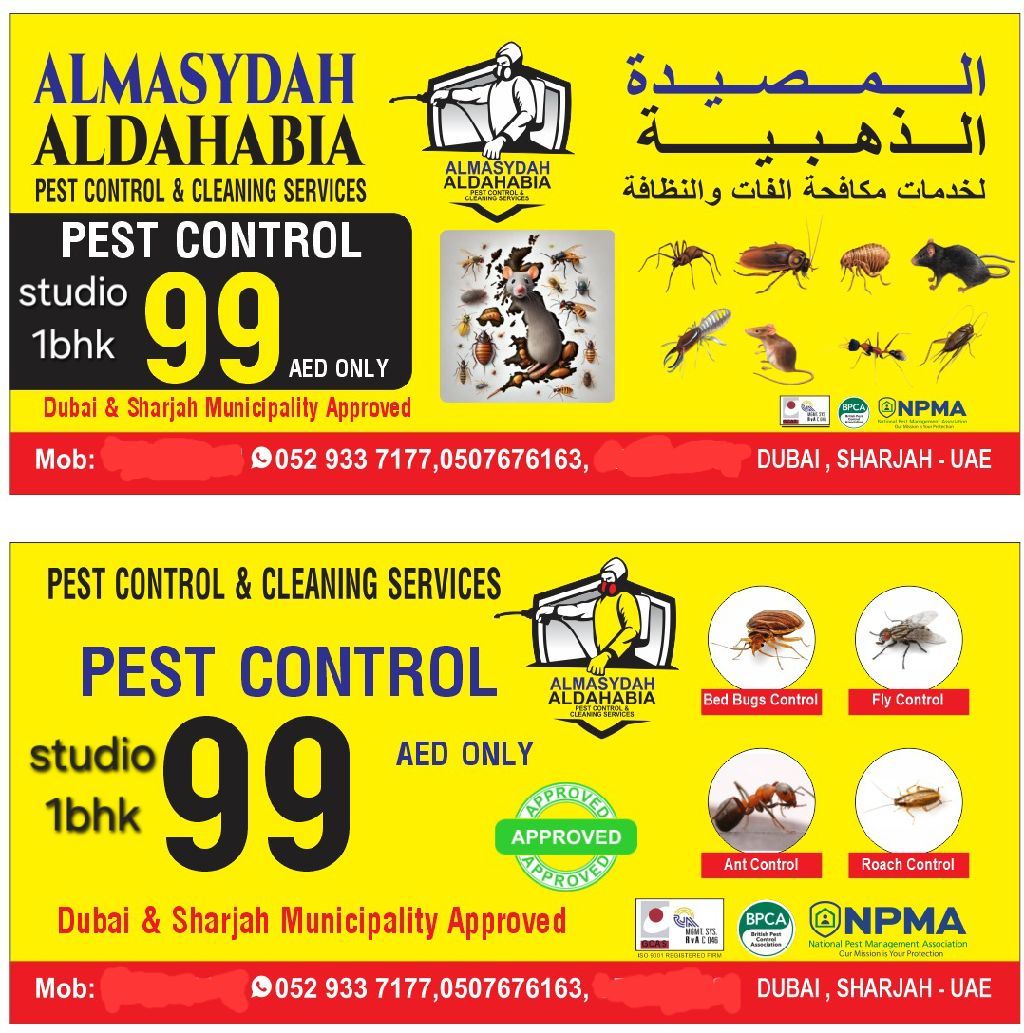 Pest Control Service prices (Studio AED99) 1bhk AED99) 2bhk AED150) 3bhk AED150) Townhouse inside and outside spray + gel AED300 Villa inside and outside spray + gel AED400