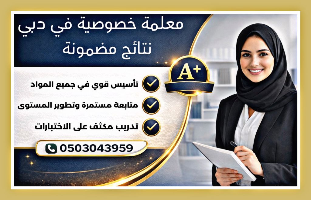 معلمة خصوصية في دبي تضمن أعلى الدرجات بخبرة قوية في تدريس جميع المواد الدراسية أقدم برنامجا تعليميا متكاملا يركز على الفهم العميق وليس الحفظ فقط مع متابعة مستمرة وخطط مخصصة لعلاج الضعف التراكمي وتطوير مستوى الطالب تدريجيا تدريبات مكثفة على الامتحانات لضمان تحقيق أعلى الدرجات والوصول الى العلامات الكاملة بأسلوب مبسط واحترافي ونتائج ملموسة من أول حصة احجز الآن وابدأ رحلة التفوق بثقة