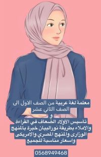 معلمة لغة عربية خبرة 15 عام حاصلة على رخصة المعلم الاماراتية تدريس بطرق سهلة ومبسطة وتدريس اللغة العربية من الصف الأول حتى الصف الثاني عشر وتدريس جميع المواد من غير الانجليزي من الصف الأول الى الصف التاسع خبرة بالمناهج الوزارية والمنهج المصري وتأسيس الأولاد الضعاف في القراءة والكتابة والأملاء المناهج البريطاني والأمريكي للتواصل