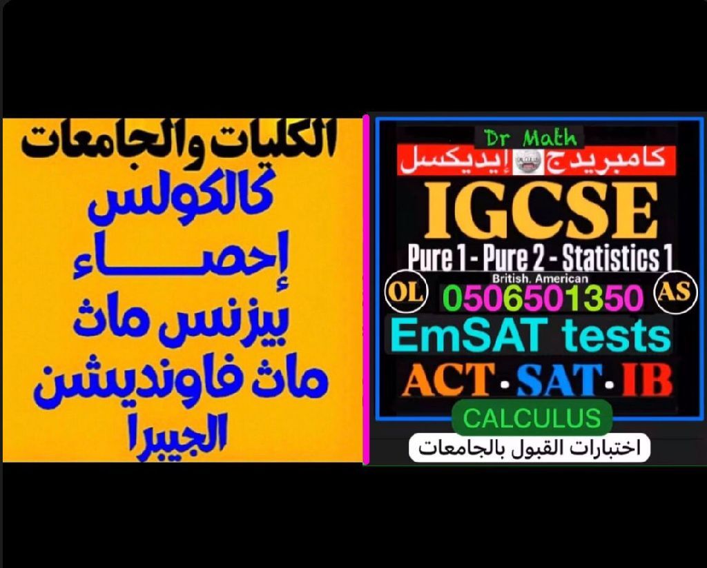 A certified Math Teacher. IGCSE, O level, A and AS Levels, Algebra 1, 2 & Geometry, Statistics. American, IB & British Curriculum) Over 20 years'experience Engineering Math, Integrated Math, Calculus (1, 2 & AP) IB Math DP (SL & HL) PYP, MYP. SABIS Math, SAT, ACT, EMsat. One on one & Online Classes