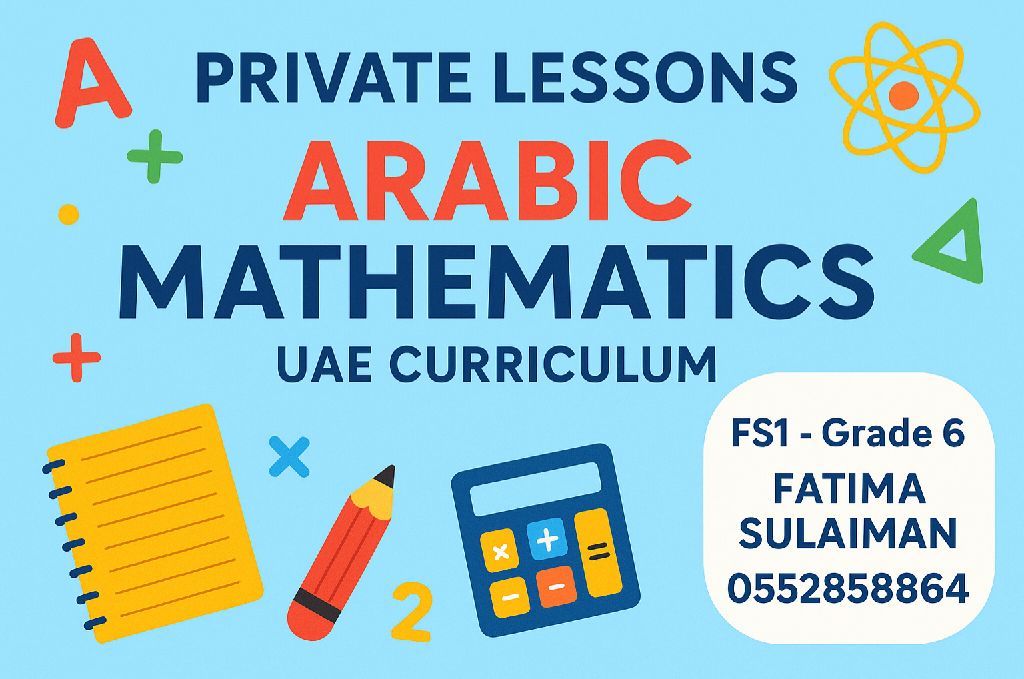 دروس خصوصية في دبي واونلاين لطلاب الصف الأول الى السادس المواد اللغة العربية (شرح + تأسيس قوي) الرياضيات بالانجليزية المنهج الوزاري الاماراتي مميزات شرح مبسط بأسلوب ممتع متابعة مستمرة وتقييم دوري حصة تجريبية مجانية حضوري في دبي أو اونلاين للتواصل