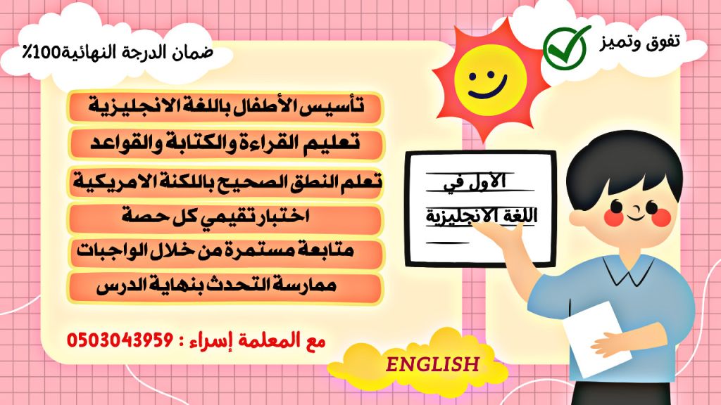 معلمة لتأسيس اللغة الانجليزية بشكل احترافي لجميع المراحل شرح القواعد من الصفر حتى الاتقان تطوير مهاراتي التحدث والاستماع شرح المحاضرات باللغة الانجليزية واللكنة الأمريكية، ممارسة مستمرة على القواعد بالتطبيقات كل محاضرة اختبارات تقييمية لضمان التقدم، وتحقيق النتائج المرجوة