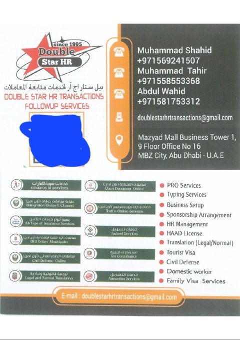 Typing center services including all labor and immigration relative services ICP GDRFAD GPPSA Tamm DED Vehicle Insurance and Registration