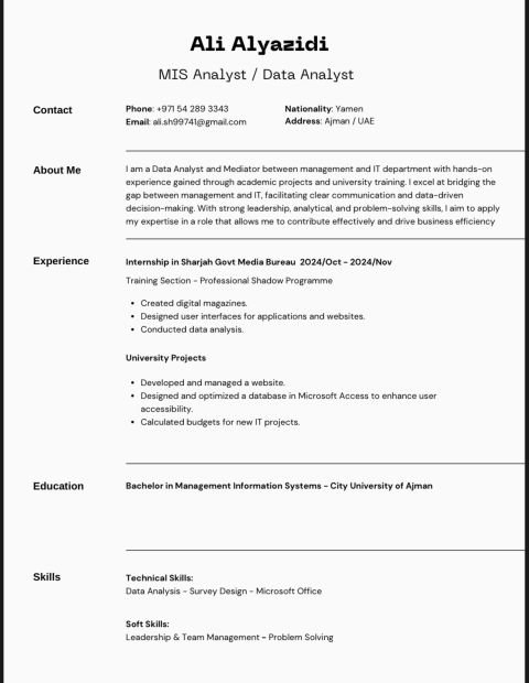 I have a degree in Information Systems Management and experience in the media field, specifically with the Sharjah Government Media Bureau