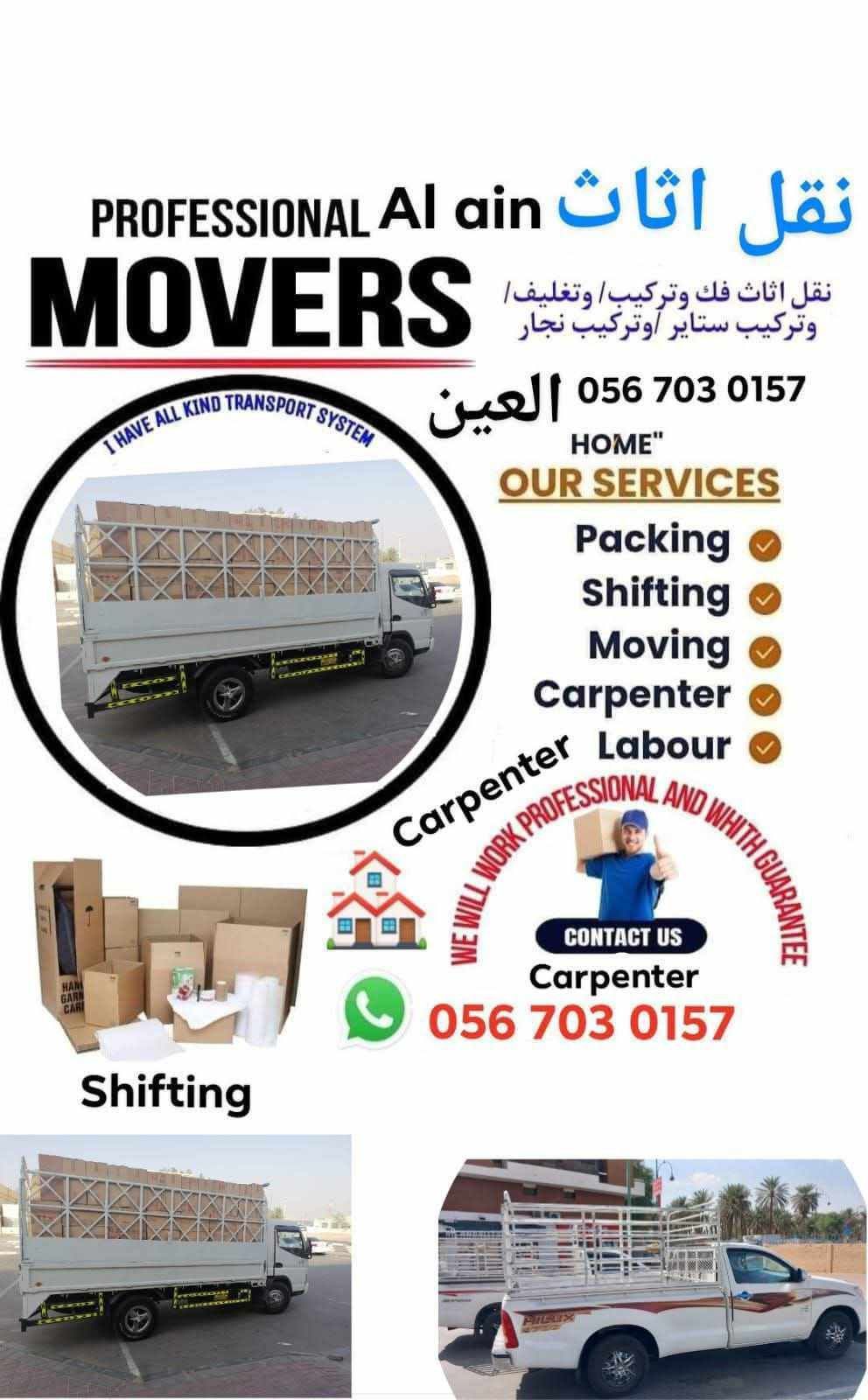 هذا اعلان لخدمات نقل العفش في الامارات العربية المتحدة. يقدم هذا الاعلان خدمات النقل والتركيب والتغليف للعفش في جميع أنحاء الامارات، بما في ذلك الخدمات 1. فك وتغليف العفش 2. تركيب العفش 3. نقل العفش 4. تركيب ستائر 5. خدمات نجارة المناطق التي يغطيها الاعلان 1. العين 2. أبوظبي 3. الفجيرة 4. دبي 5. رأس الخيمة 6. عجمان 7. أم القيوين 8. الشارقة