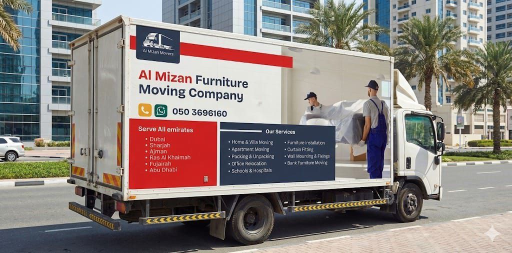 0503696160 Al Mizan Furniture Moving Company ^ Dubai ^ Sharjah Ajman Ras Al-Khaimah Fujairah Umm Al Quwain Khor Fakkan Furniture Moving Furniture Moving, unpacking and installation of all types of furniture, offices, homes, villas, apartments, hanging cars and installation of curtains