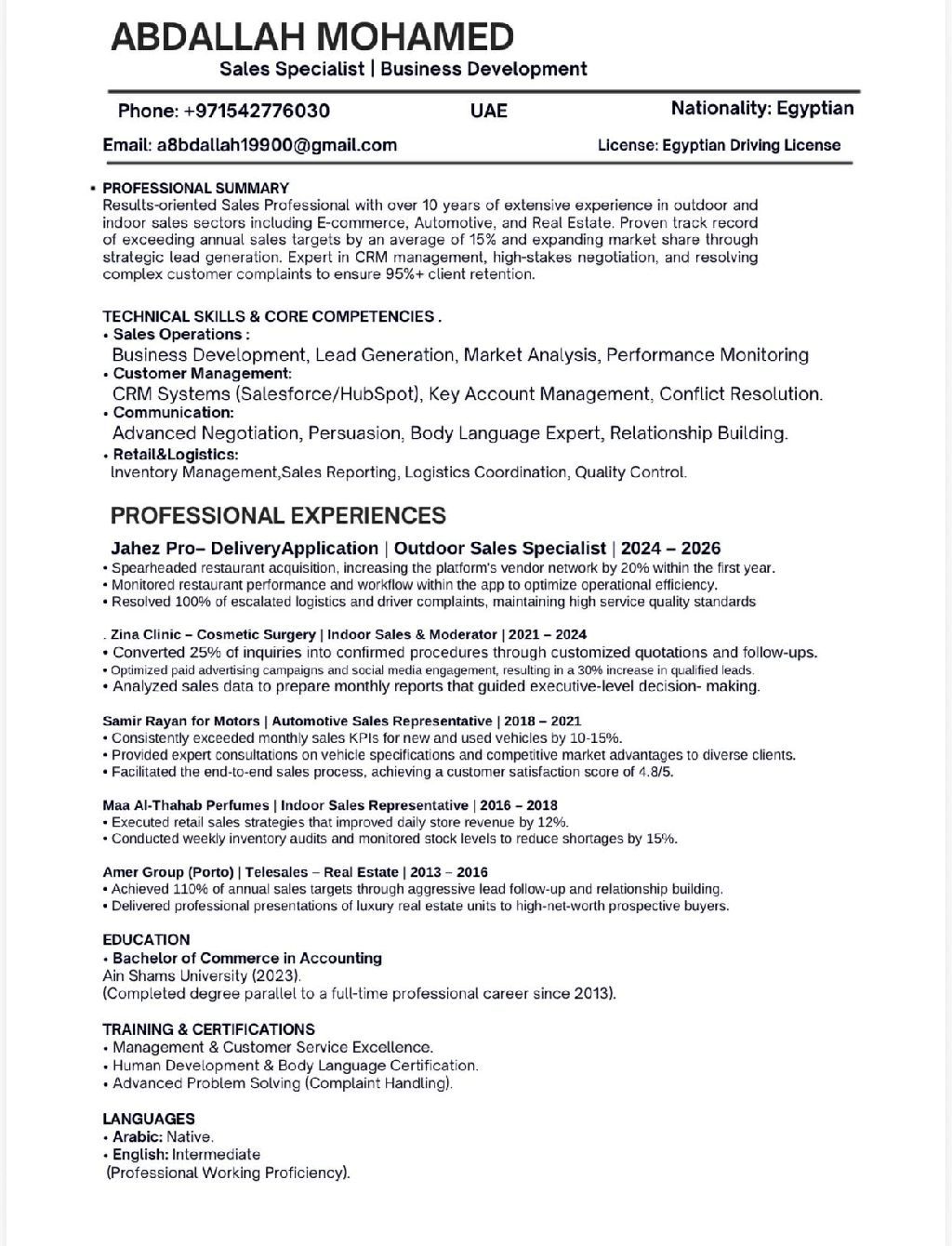 سيلز خبرة أكثر من 7 سنوات في أكثر من مجال