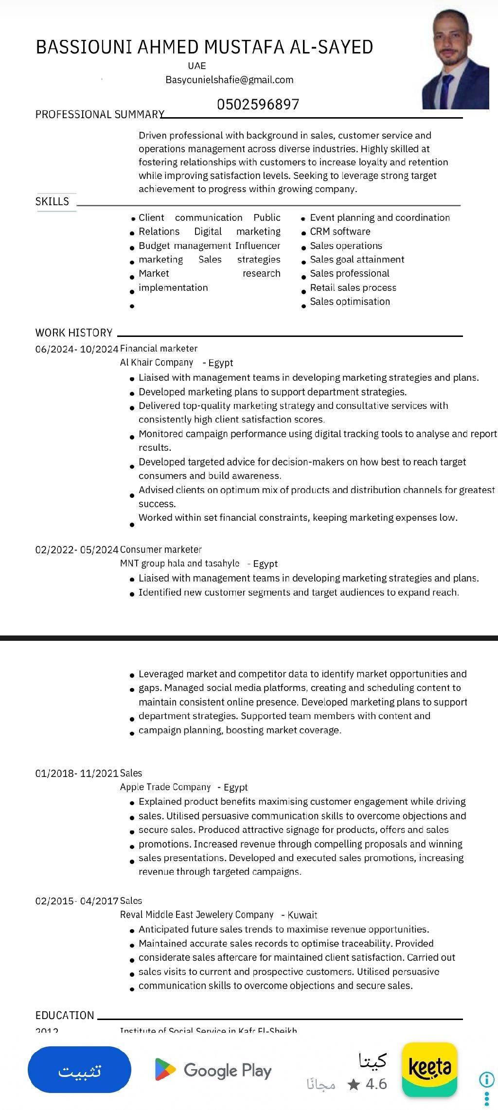 يطلب عمل مبيعات وتسويق في الإمارات