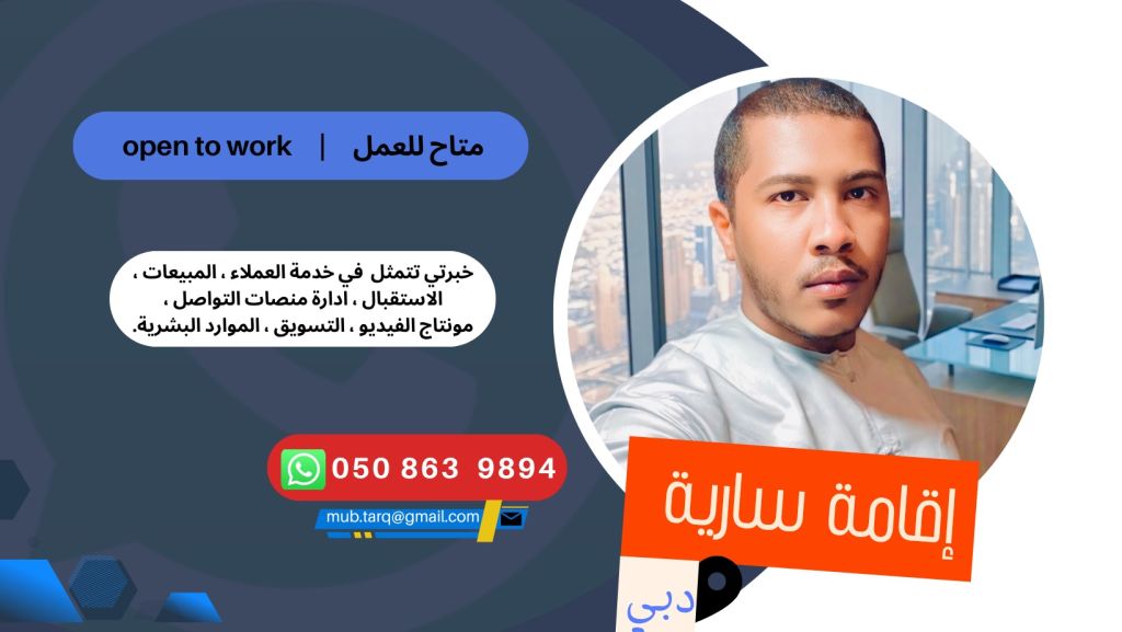 ابحث عن فرصة مهنية في خدمة العملاء، المبيعات، الاستقبال، إدارة الفروع، الموارد البشرية، السوشيال ميديا، التصميم والمونتاج. لدي اقامة سارية وجاهز للانضمام فورا