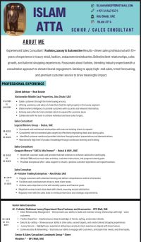 I have been in the Automotive and Retail fashion industry in UAE for quite some time now and am looking to explore other opportunities. If you have any openings in sales, please let me know I attached my Resume with my previous companies of work I complete as part of my internships