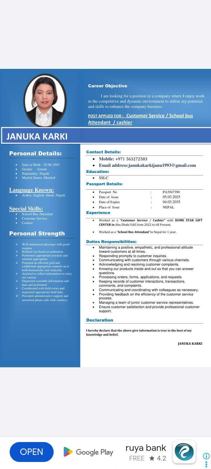 I have 5 year experience for cashier if someone interested can contact me can u check my CV