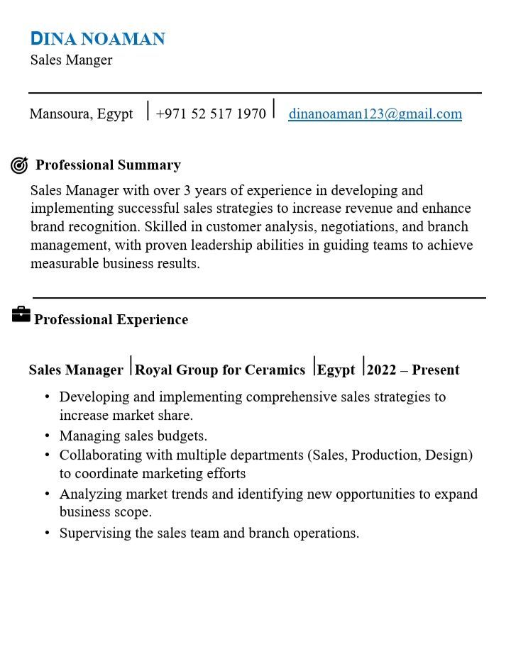 Sales Manager with over 3 years of experience in developing and implementing successful sales strategies to increase revenue and enhance brand recognition. Skilled in customer analysis, negotiations, and branch management, with proven leadership abilities in guiding teams to achieve measurable business results