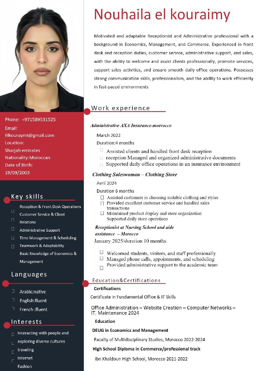 Motivated and responsible woman looking for a job. I have basic experience in clothing sales and customer service. I am a fast learner, willing to improve my skills, and ready to work seriously. Available to start immediately