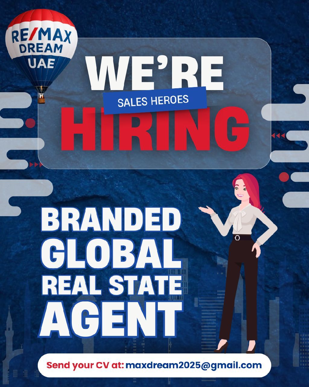 Hiring for Sales Heroes Join our Branded Global real estate Agent Team - Work Location Barsha, Dubai, UAE - English Speaker only - more than 2 years of experience What We Offer - Competitive commissions and benefits - A dynamic and collaborative work environment - Opportunities for career growth and professional development - Extensive experience with a strong marketing focus