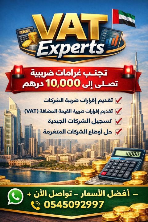تجنب غرامات ضريبية تصل الى 10000 درهم هل شركتك مسجلة في الامارات نقدم خدمات تقديم اقرارات ضريبة الشركات تقديم اقرارات ضريبة القيمة المضافة (VAT) تسجيل الشركات الجديدة ضريبيا حل أوضاع الشركات المتغرمة أفضل الأسعار - سرعة ودقة تواصل الآن (اتصال