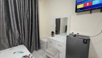 Luxurious master bedroom with a stunning open view in the England Cluster. The comfortable and spacious room is located in a newly furnished apartment near Dragon Mart and the bus station. The room features brand new furniture for your comfort A private refrigerator, and a TV. A very limited number of roommates in the apartment It ideal for two men or a single working man. rent includes utilities