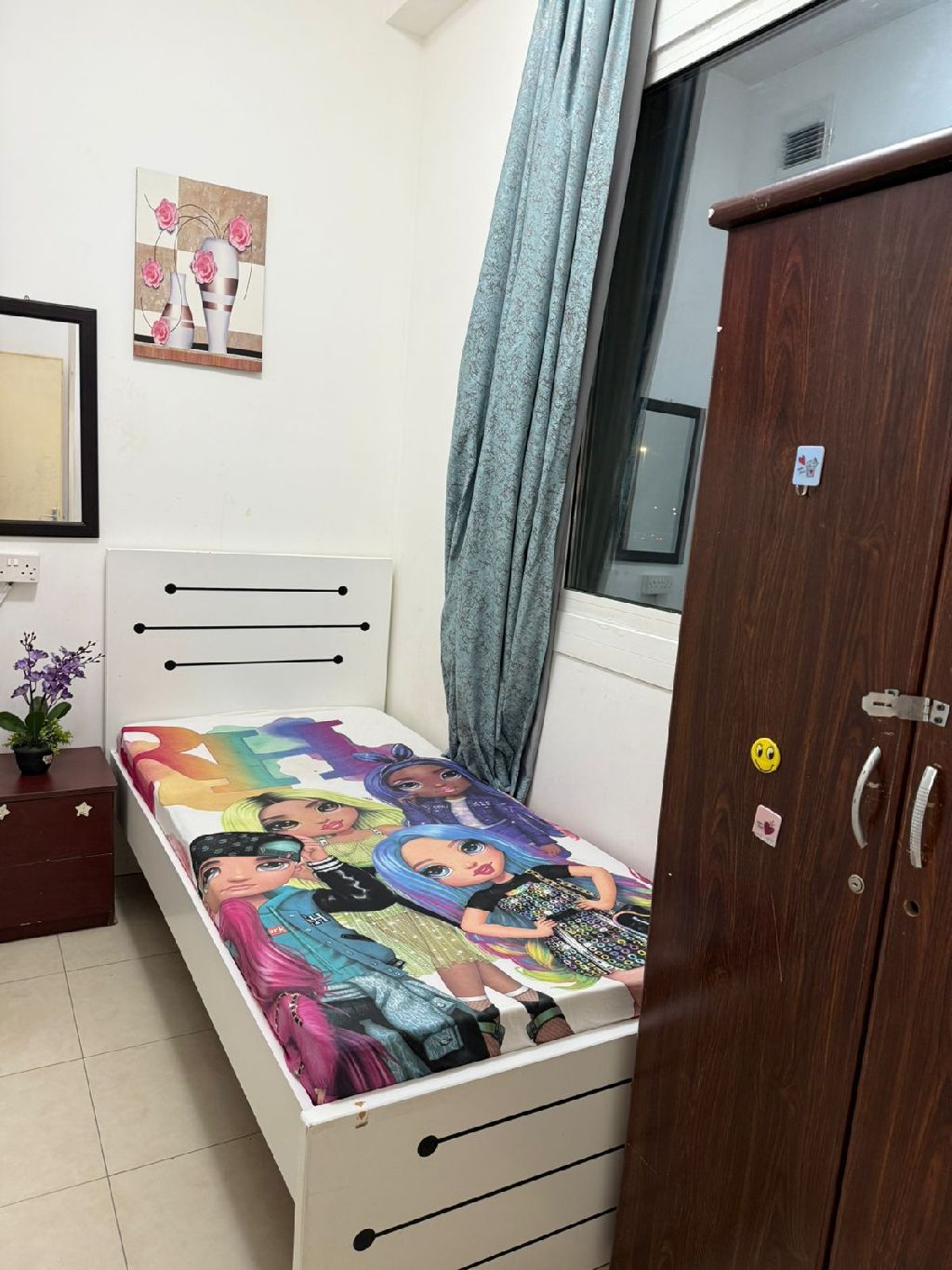 For only ladies Rooms and partations in a new beautiful flat very near to stadium metro station and al lulul hyper market in Al Nahda first Dubai, including everything like DEWA internet gass gym swimming pool and daily cleaning starting from 1200 to 1800 depending of the size and if with palkony or window or with big carport