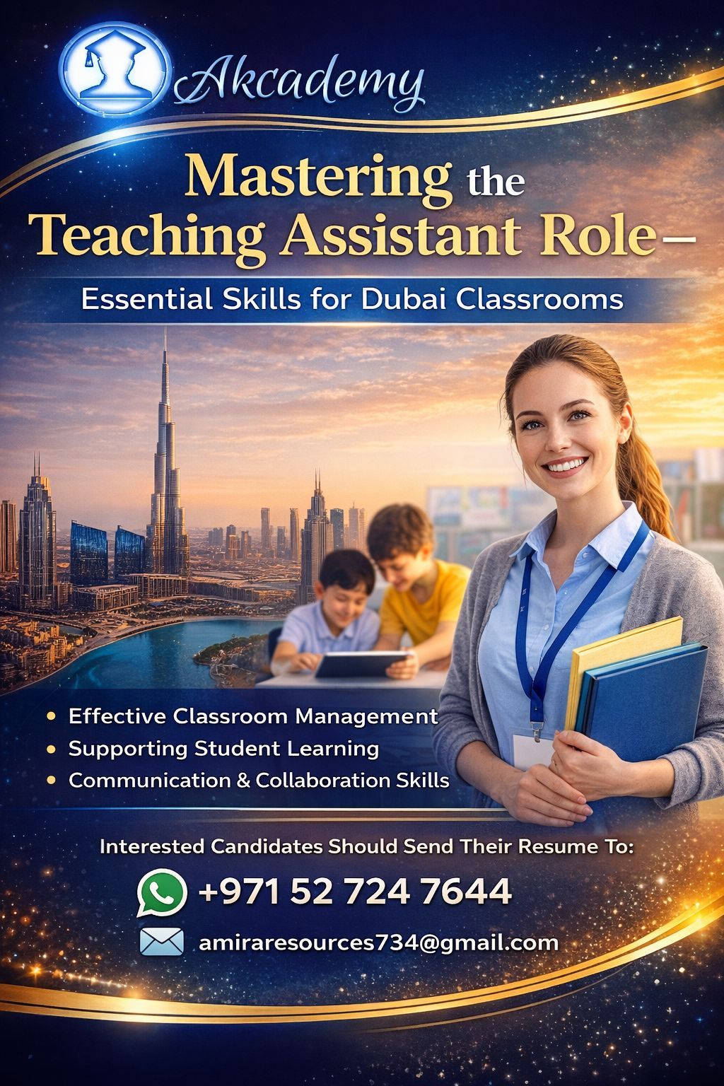 Akcademy proudly presents a professional Teaching Assistant Training Program designed to prepare participants for successful roles in Dubai’ schools and educational institutions. This course equips learners with the practical skills, confidence, and classroom knowledge required to effectively support teachers and enhance student learning in a multicultural classroom environment. Job is provided immediately