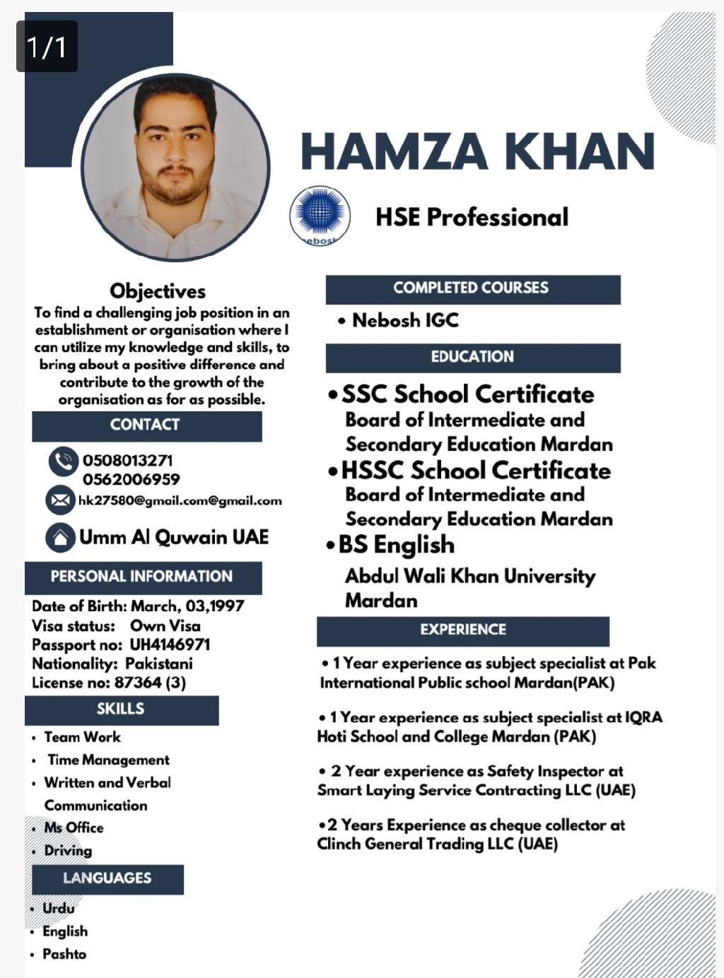 I am Hamza khan from Pakistan, have own visa searching for teaching job in school or institute