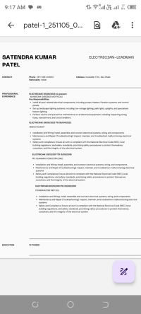 I am satyendr Patel working electrician swimming pool + building + Billa + maintenance from India