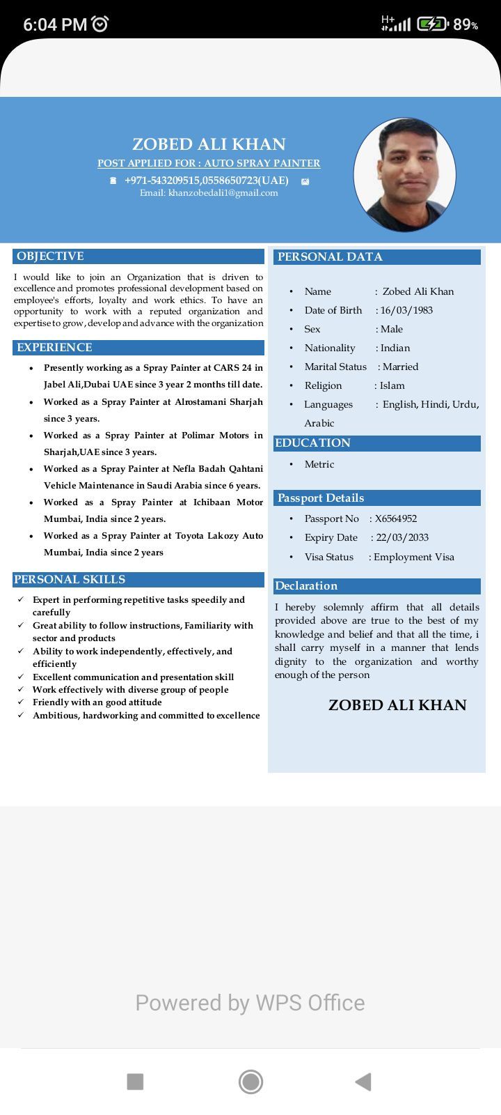 CARS 24 - Jebel Ali, Dubai, UAE Position Spray Painter Duration Jan 2021 - Present (3 Years, 2 Months
