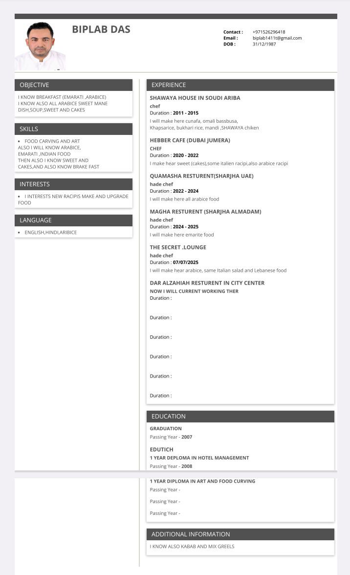 I am a arabice chef (also I know Indian, coty, cacks and sweet) I need job