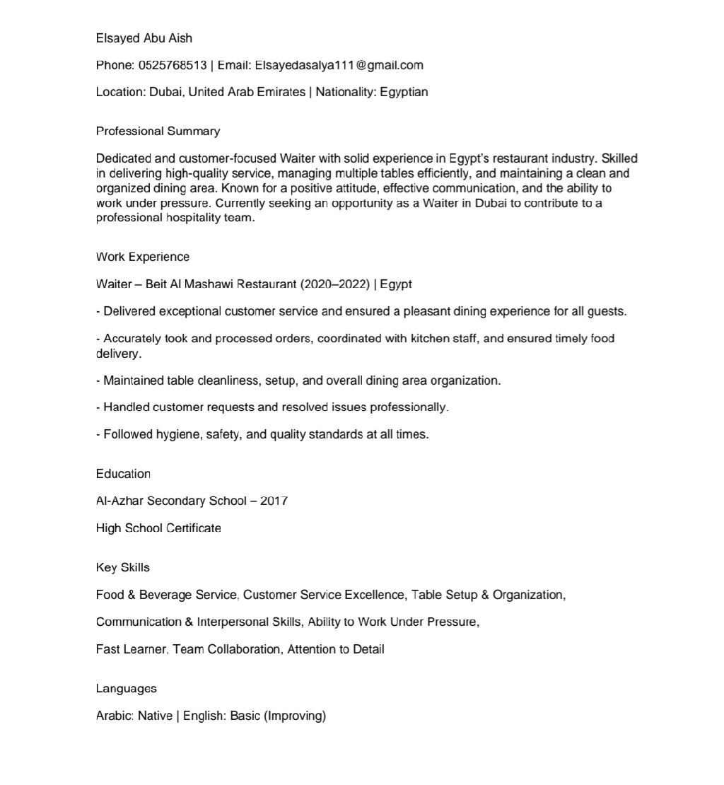 ابحث عن فرصة عمل في مجال السياحة والطعام متاح على الفور