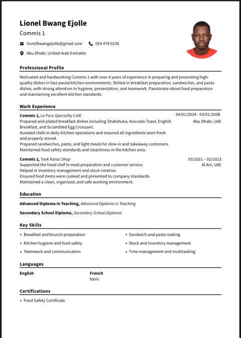I am a chef specializing in all kinds of appetizers (Eastern, Western, and Italian) I have extensive experience in the UAE and hotels, with precision and speed in execution. I am looking for a good job opportunity