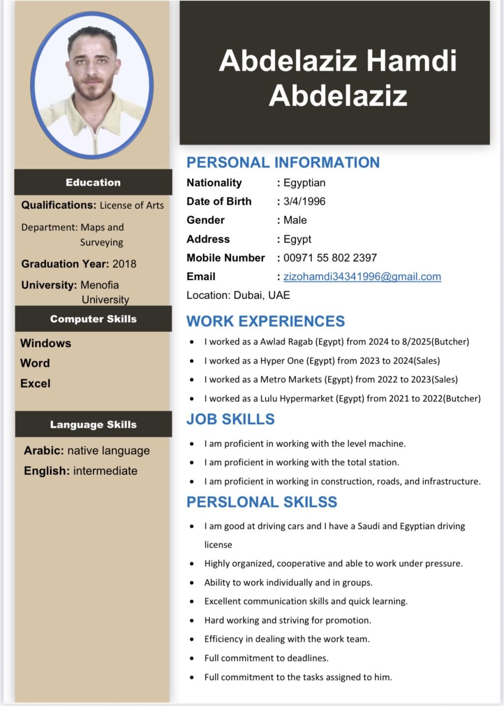 ابحث عن عمل. أنا جزار أجيد أعمال ألتشفيه وأعمال التقطيع