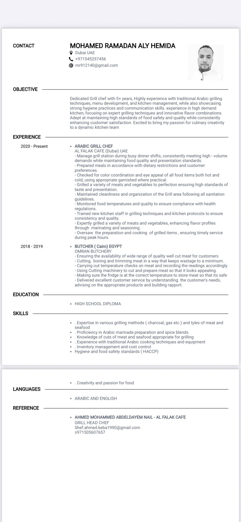 شيف مشاوي خبرة جيده جميع أنواع المشاوي شك وتتبيل وتشفايه خاروف متواجد في دبي