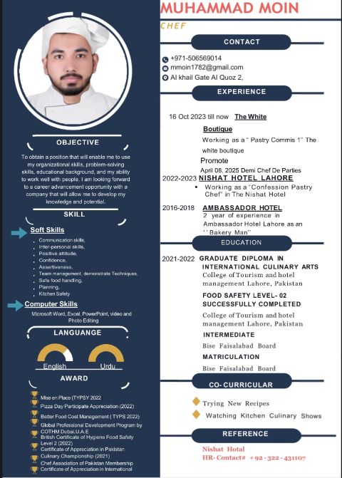 He'll everyone I hope all is well so am interested restaurant field I search the job I have 8 years experience cheff and supervisor am well education language English, Arabic, Urdu, Hindi