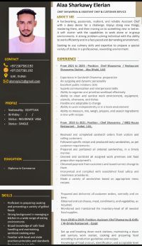 أنا قصاص شاورما ولف سندويشات علي الأول ولدي خبرة ثلاث سنوات ولدي اقامة قبل الاعارة