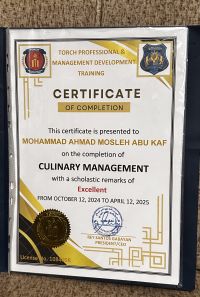 My name is Mohammad, I am from Jordan, I have 8 years experience in Arabic Restaurant named (Bait El Khetyar) and I work also in al Qana I have cetificate from Culinary School, I am a multitasker and able to work underpressure, and I am eager to search Opportunity in Hotels and Fine Dinning Restuarants, My language spoken is both fluent Arabic and English, my target salary is 5000 with free acc