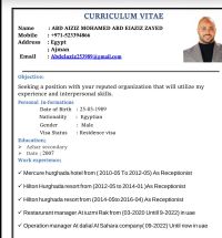 ابحث عن وظيفة في مجال السيلز والسياحة أو المطاعم عندي خبرة أكثر من 10 سنوات في مجال الفنادق و4 سنوات خبرة في مجال سيلز في شركات السياحة الداخليه ومنسق رحلات