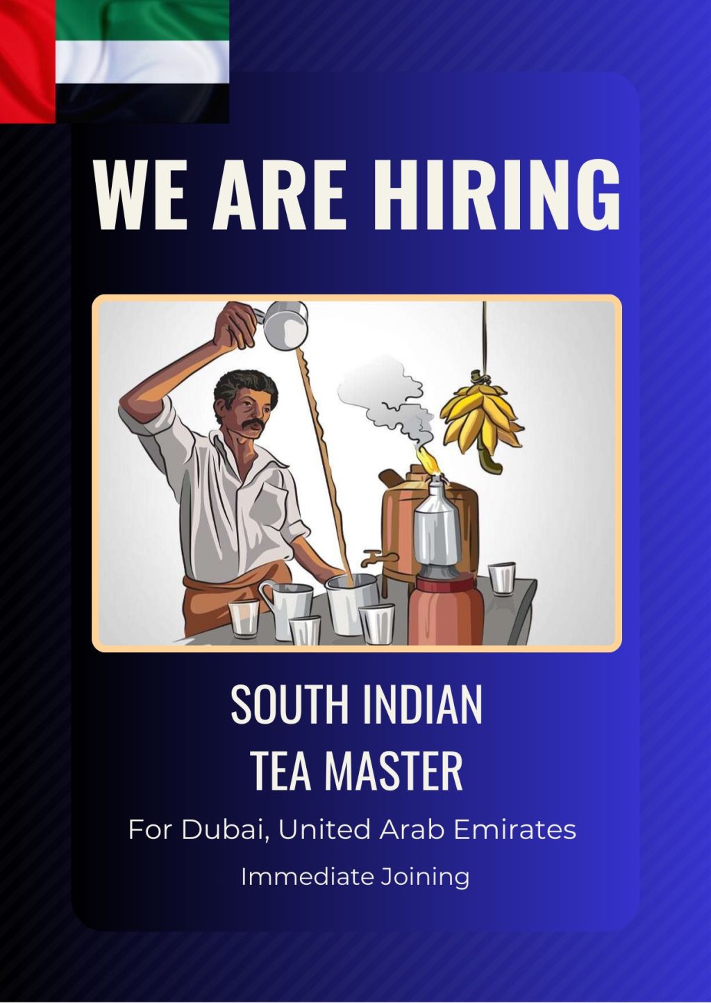 We are urgently looking for Tea Master, anyone with own Visa, visit visa or cancellation can apply. Immediate joining with Visa, food and accommodation for a restaurant in Al Qusais Industrial Area 3, Dubai. Salary AED1800 - 2000